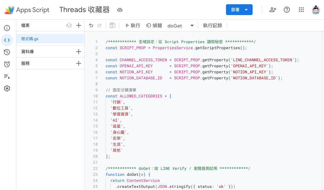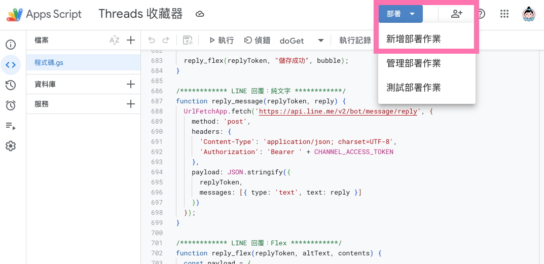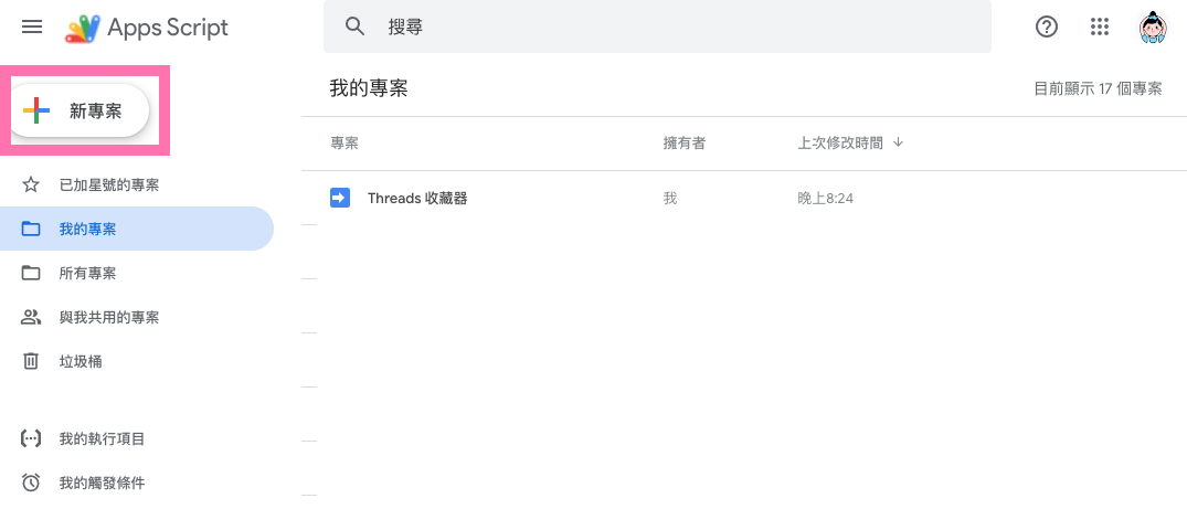 - 接著要到 Google Apps Script 建立一個 Threads 收藏器專案