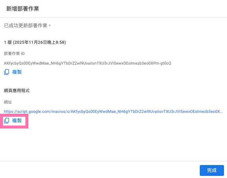 請 AI 直接幫你改分類,將下方程式碼貼到 AI,並輸入以下參考指令「我要修改此 Apps Script 程式碼其中的「分類」,調整為 AI、數位工具、職涯、美食、旅遊、其他這 6 類,只要改分類就好,其他內容不要調整,並給我完整可直接覆蓋的程式碼」,並可額外附上分類說明,再將 AI 修改好的程式碼保存下來。